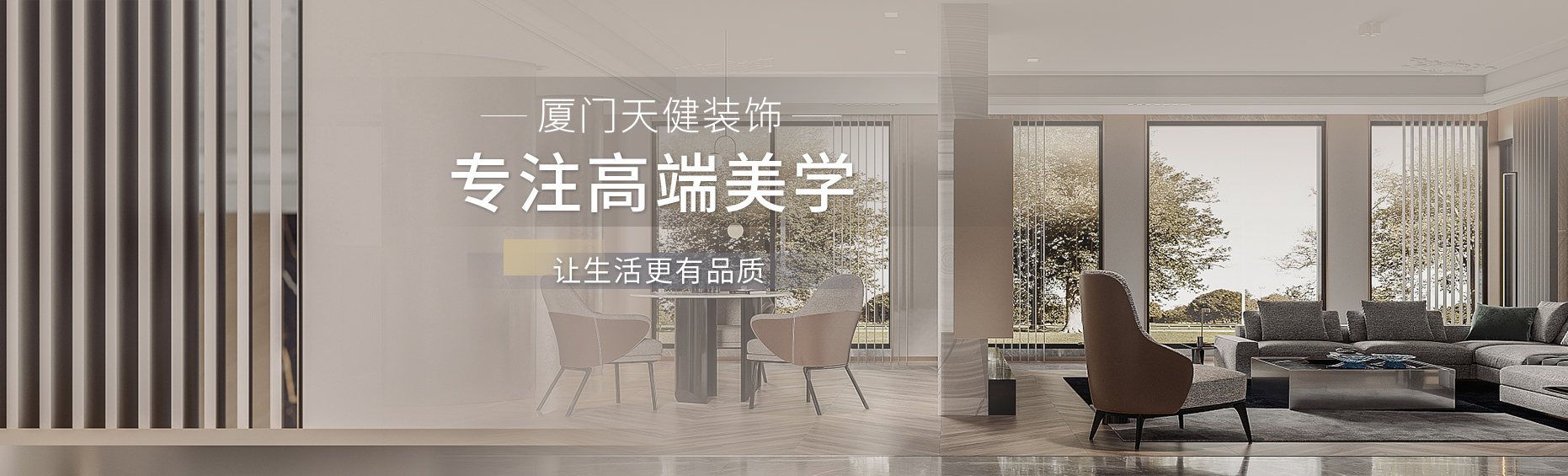 廈門(mén)天健建筑裝飾工程有限公司—高端品質(zhì)裝飾解決方案提供者 設(shè)計(jì)有形,裝飾有界,夢(mèng)想無(wú)疆。天健裝飾,秉承“造天工、載厚德”的價(jià)值觀,以“造高端美學(xué),傳工匠神韻”為理念,創(chuàng)造令人感動(dòng)的美學(xué)空間,致力成為中國(guó)裝飾行業(yè)領(lǐng)軍品牌。